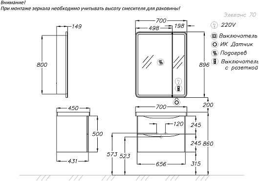 - Размер (ШxВxГ): 700x896x149 мм.