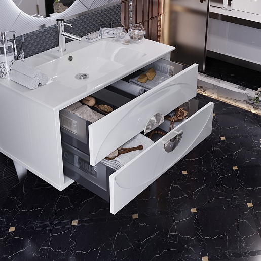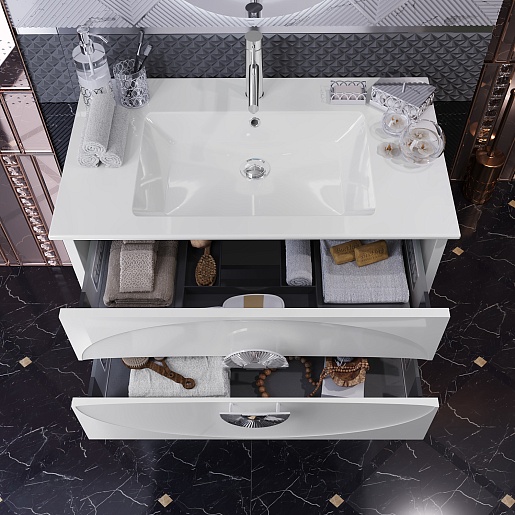 Тумба под раковину Ибица 90 подвесная белая/хром