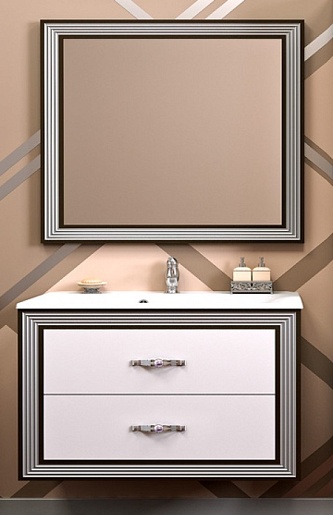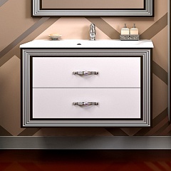 Описание: подвесная тумба с двумя выдвижными ящиками, обрамленная по периметру рамой с классической раскладкой. В комплект входит раковина "Прима 100".