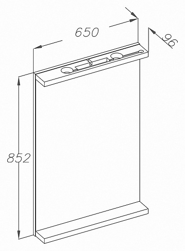 Описание: влагостойкое зеркальное полотно с полкой, встроенная подсветка.