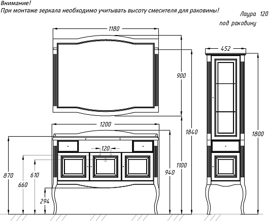 - Размеры (ШxВxГ): 1180x900x22 мм.