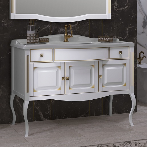 Тумба под раковину Лаура 120 белая с бежевой патиной
