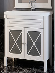Описание: напольная тумба с распашным фасадом, механизм доводчика. В комплект входит раковина Анита 75 из литьевого мрамора.