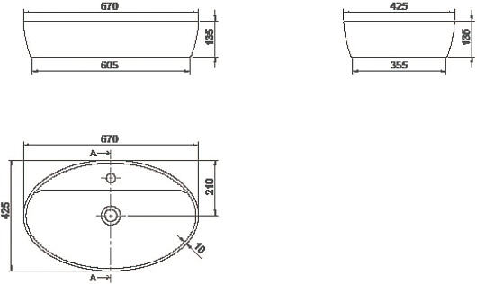 - Накладная раковина со слив-переливом.