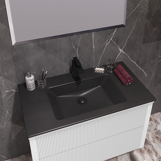 - Раковина в цвете антрацит со слив-переливом.