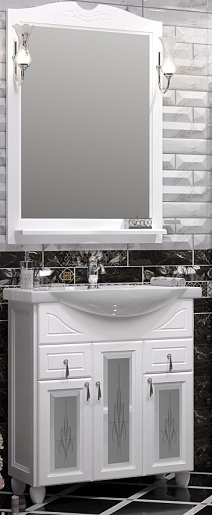 Тумба под раковину Тибет 75 белая, с художественным стеклом