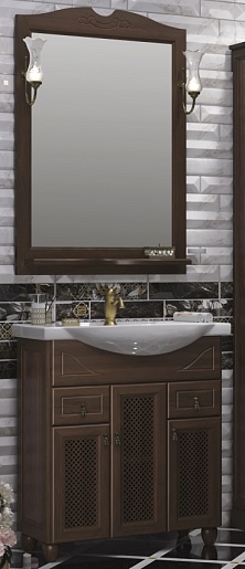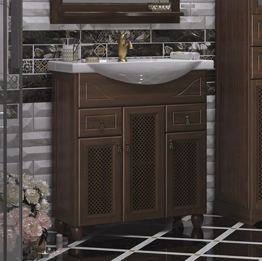 Тумба напольная Тибет 75 арт. 00-00002843: распашные фасады с декоративной решеткой, ящики, фурнитура - бронза.