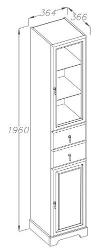 Описание: пенал для ванной с выдвижными ящиками и с распашными фасадами, декорирован вставкой из стекла. Внутреннее пространство оснащено полками. Пенал выполнен из массива бука.