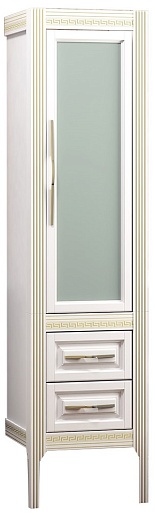 Описание: пенал для ванной с выдвижными ящиками и с распашным фасадом, декорированным вставкой из стекла. Внутреннее пространство оснащено полками. Пенал выполнен из массива бука.