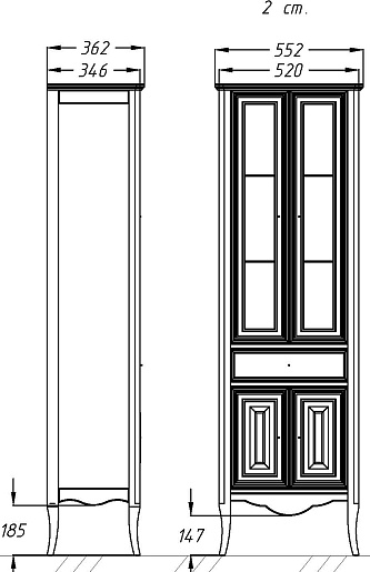 - Материал корпуса/фасада: массив бука, МДФ / массив бука, стекло.