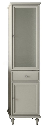 Описание: напольный пенал с ящиком и распашными фасадами, декорированными стеклом. Пенал выполнен из массива бука. Отделения оснащены вкладными полками для удобства организации хранения.