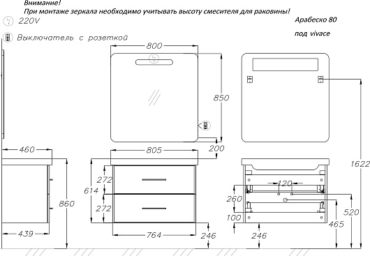 Opadiris Тумба под раковину Арабеско 80 подвесная белая