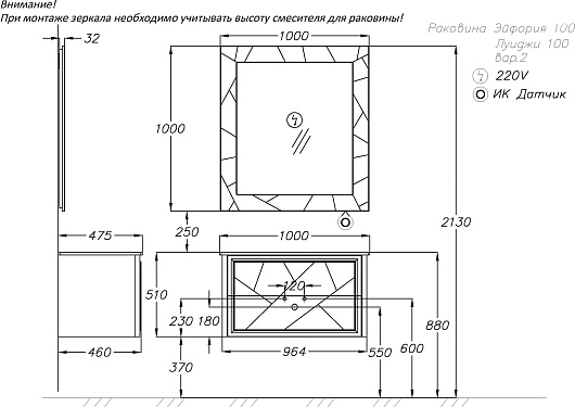 Тумба под раковину Opadiris Луиджи 100 - арт. 00-00006177.