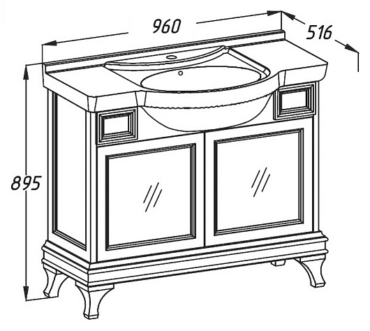 - тумба под раковину из массива бука, распашные фасады с вставками из матового стекла