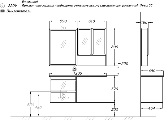 Тумба с раковиной Opadiris Фреш 120 L под стиральную машину - арт. 00-00007084 / ФР-00001490.