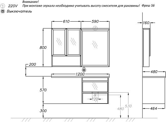 Тумба с раковиной Opadiris Фреш 120 R под стиральную машину - арт. 00-00007084 / ФР-00001528.