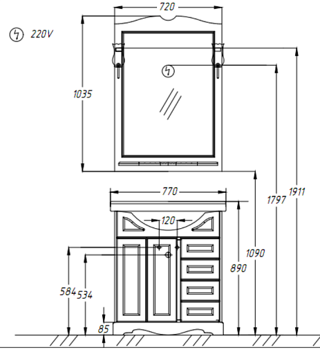 - Тумба под раковину напольная, массив бука, фурнитура-бронза.