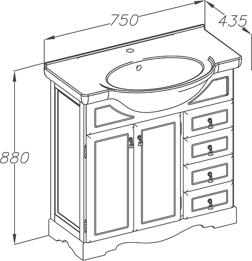 Тумба с раковиной Opadiris Клио 75 - арт. 00-00002832 / 4620008197920.