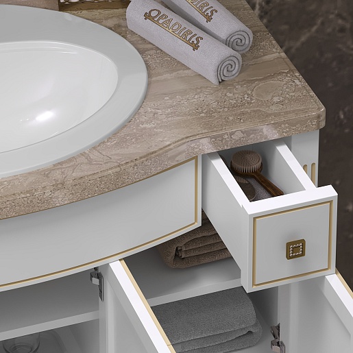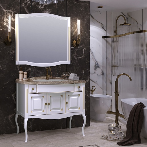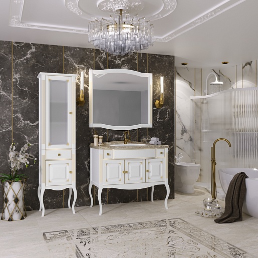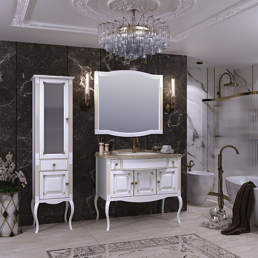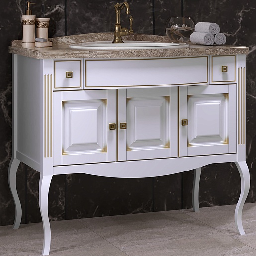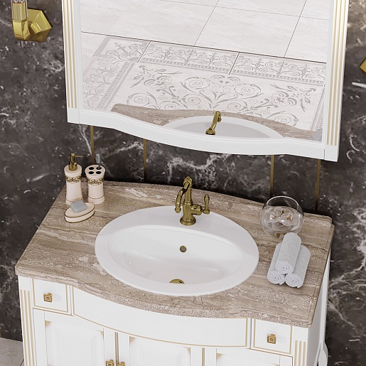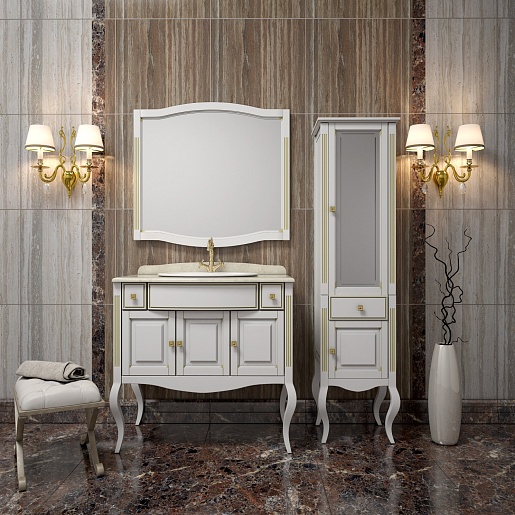 Тумба под раковину Лаура 100 белая с бежевой патиной