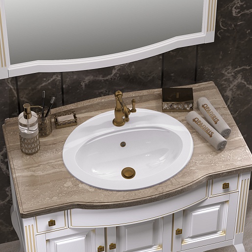 Opadiris Тумба с раковиной Лаура 100 белая с патиной, мраморная столешница