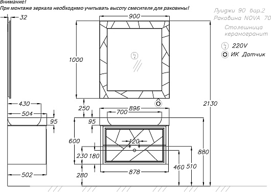 Тумба с раковиной Opadiris Луиджи 90 - арт. 00-00005939 / Z0000009175 / 00-00005736.