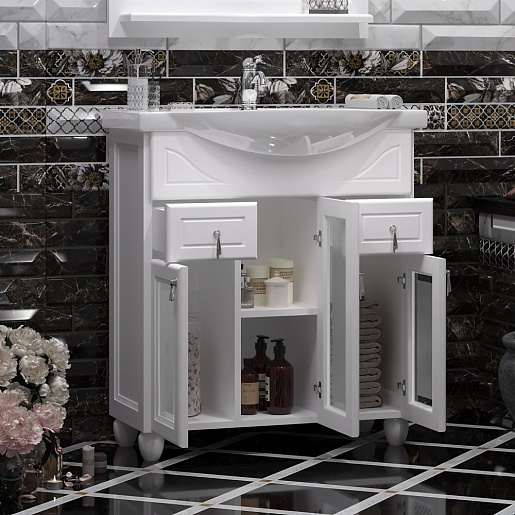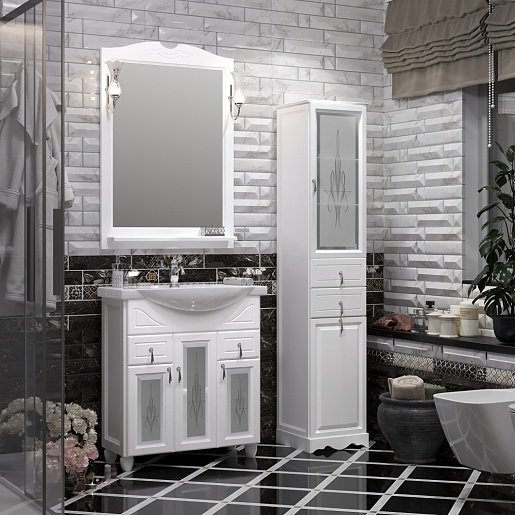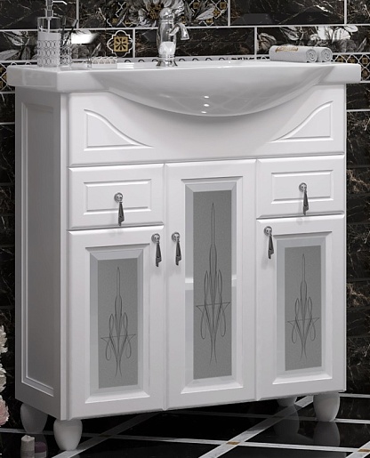 Тумба под раковину Тибет 75 белая, с художественным стеклом