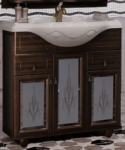 Тумба под раковину Тибет 85 с художественным стеклом, нагал