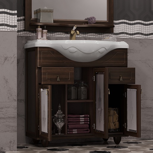 - Тумба под раковину напольная Тибет 85: массив бука, распашные фасады, выдвижные ящики, фурнитура - бронза.