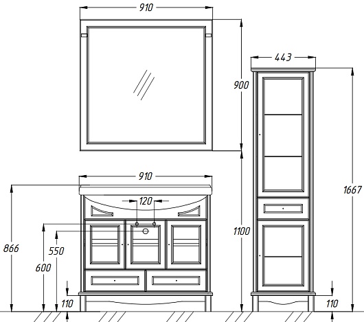 Opadiris Зеркало для ванной Омега 90 слоновая кость