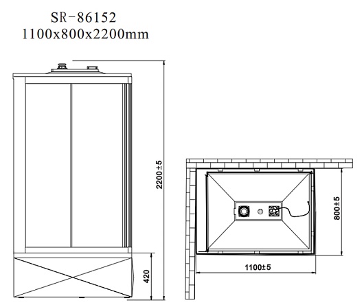 - стекла примыкающие к стенам цвет "Smoky white", остальные прозрачные, толщина 6 мм.