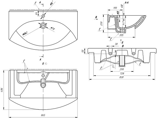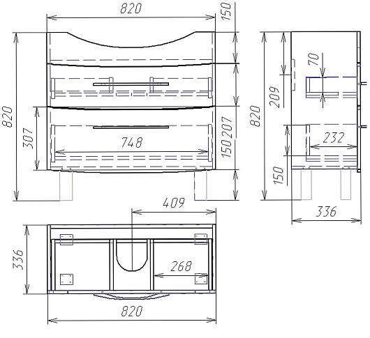 - Тумба под раковину Vessla stor 85 с выдвижными фасадами.