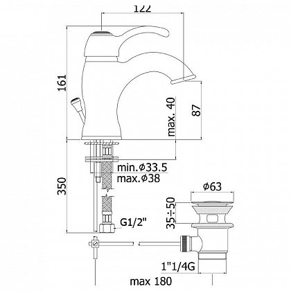 Высота излива, мм: