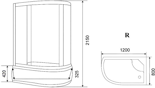 - Глубина поддона: 325 мм.