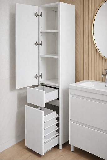 Шкаф-пенал Vivon Atwood 35 L с корзиной белый матовый левосторонний - арт. Atwood-35-L-WH.