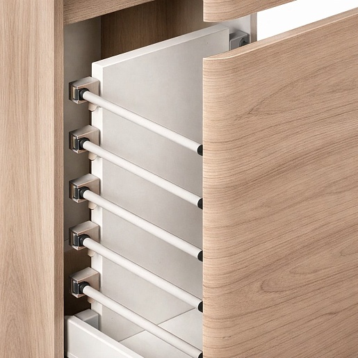 - Петли дверки и направляющие ящика оснащены механизмом плавного закрытия (доводчиками).