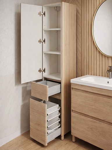 Шкаф-пенал Vivon Atwood 35 L с корзиной дерево левосторонний - арт. Atwood-35-L-Wood.