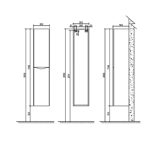 BelBagno Пенал для ванной Ancona-N 35/170 L Rovere Bianco