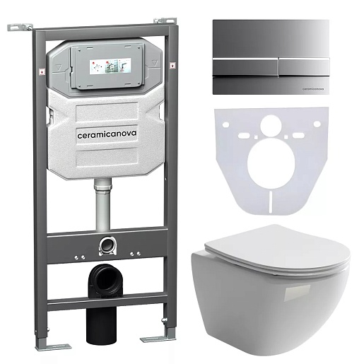 Ceramicanova Подвесной унитаз Balearica Rimless с шумоизоляционной панелью CN1000 с системой инсталляции Envision кнопка Round белая