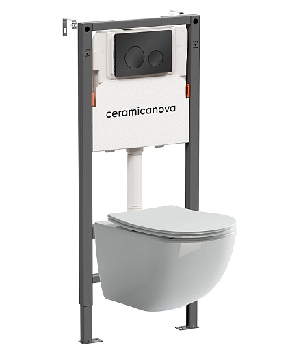 Ceramicanova Подвесной унитаз Forma Rimless с системой инсталляции Balance кнопка Circle черный матовый