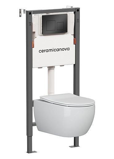 Ceramicanova Подвесной унитаз Play Rimless с системой инсталляции Balance кнопка Square черный матовый