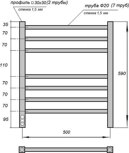 Point Полотенцесушитель электрический П7 500x600 PN70756B черный