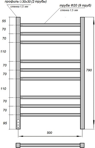 Point Полотенцесушитель электрический П9 500x800 PN70758B черный