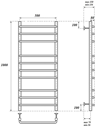 Комплектация: полотенцесушитель, телескопическое крепление к стене (4 шт.), кран Маевского.