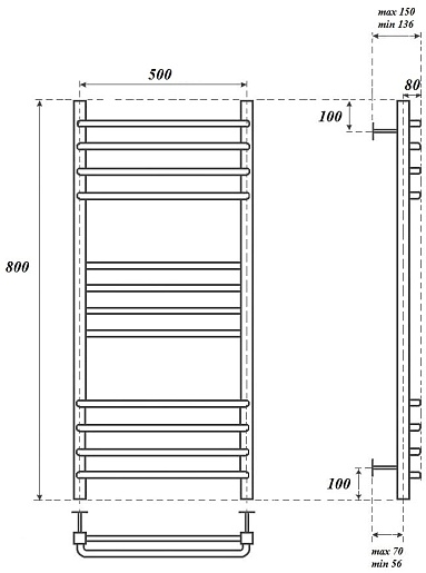 Комплектация: полотенцесушитель, телескопическое крепление к стене (4 шт.), кран Маевского.