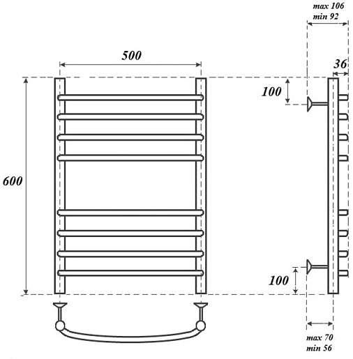 Point Полотенцесушитель водяной П8 500x600 PN05156S хром