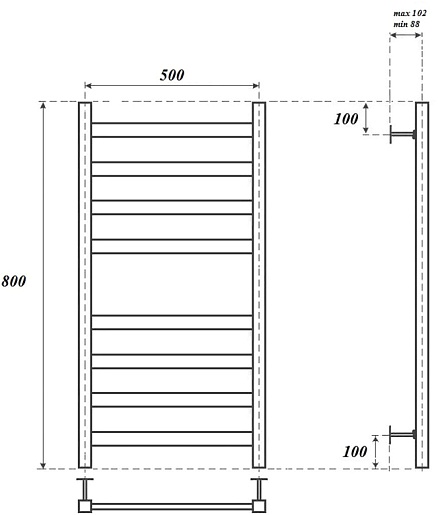 Комплектация: полотенцесушитель, телескопическое крепление к стене (4 шт.), кран Маевского.