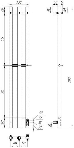 Комплектация: полотенцесушитель, крепление к стене, сетевой кабель.