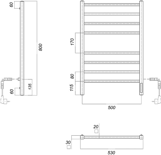 Комплектация: полотенцесушитель, крепление телескопическое (4 шт.), комплект для скрытого подключения.