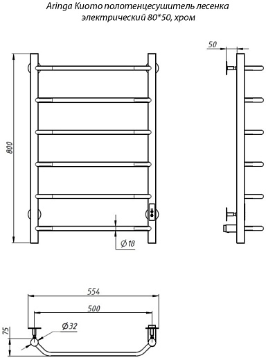 Полотенцесушитель электрический Aringa Киото 50x80 AR03002CH хром.