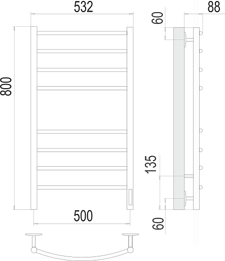 Полотенцесушитель электрический Terminus Классик П8 500x800 - арт. 4670078527592.